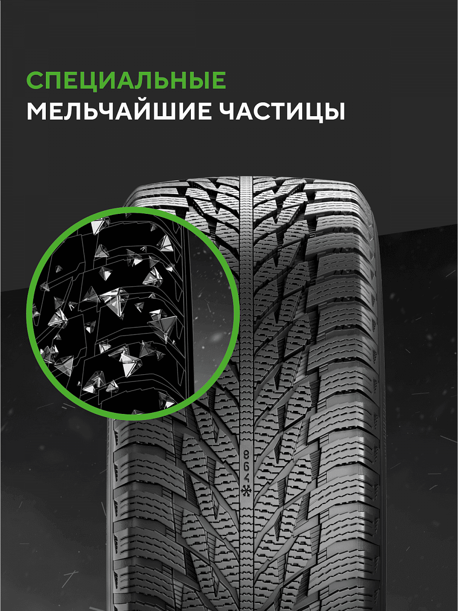 Точное управление на снегу достигается благодаря «снежным когтям», расположенным между шашками протектора и плечевыми зонами.